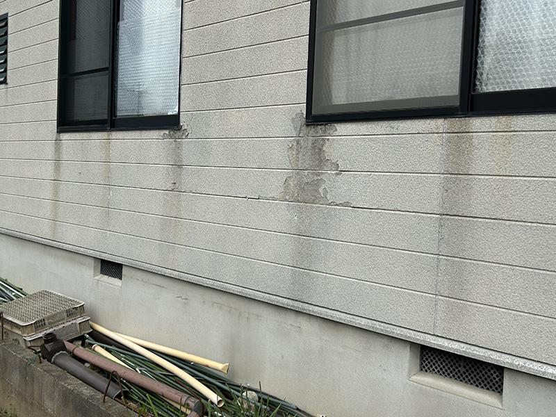 外壁には爆裂現象があり、雨筋汚れも多く見られました。
