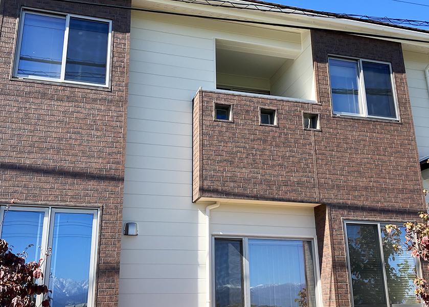 富山市の外壁カバー工事 アクセントのレンガ調を残しつつ2社の金属サイディングの張り分けを行いました!