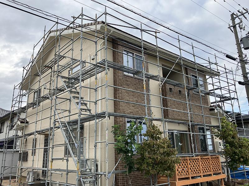 足場組立→付帯塗装→下地胴縁打ち→役物取付→本体張り→仕上げ役物取付→付帯塗装仕上げ→コーキング→検査→手直し→足場解体→近隣清掃→完了