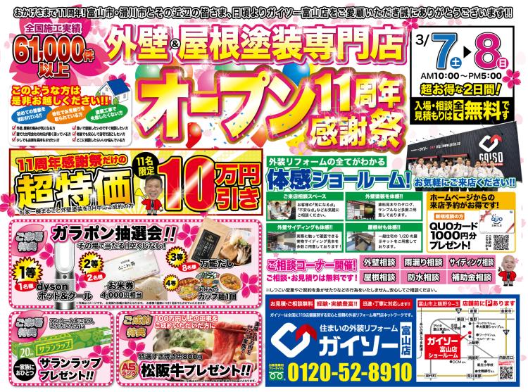 3月7日㈯・8㈰ 祝・オープン11周年!「感謝祭」開催のお知らせ