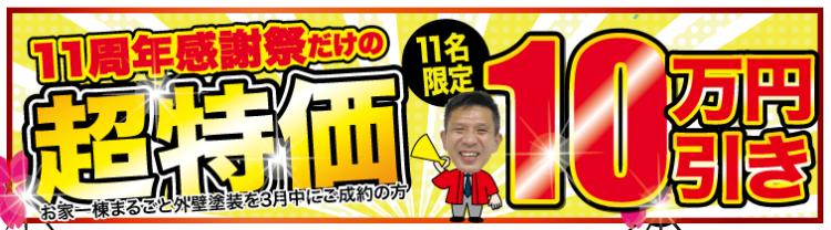 お家一棟まるごと外壁塗装を3月中にご成約いただいた方、限定11名様に!