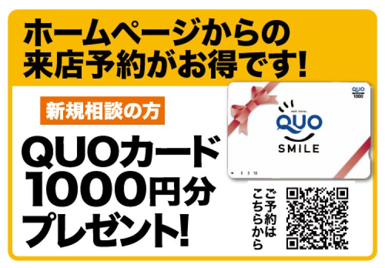 ホームページから事前に来店予約をされた新規相談の方に、QUOカード1,000円分をプレゼント!