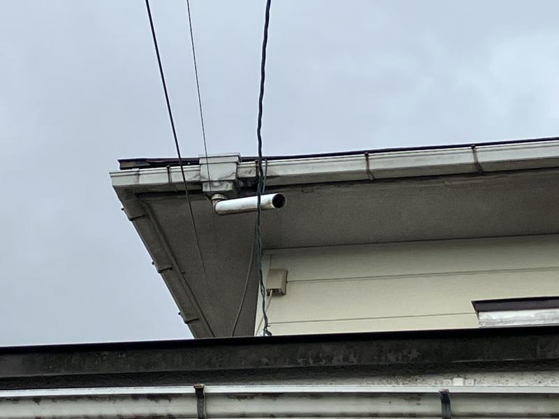 雨樋の連結部分が外れ、水が集水桝まで流れないようになっています。