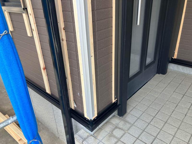 次は、土台スターター水切りや、角、窓廻りの部材の取付です。