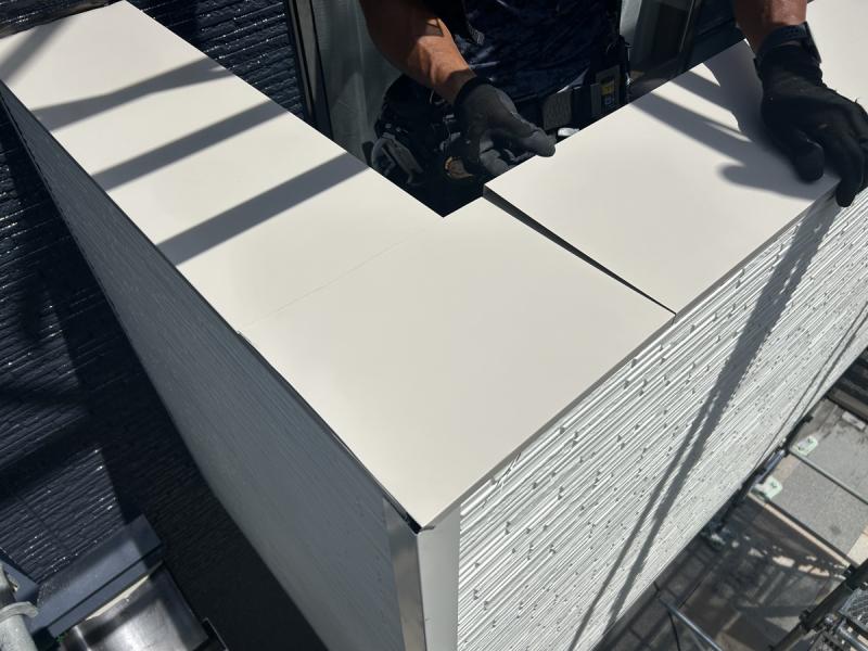 金属サイディングは出隅や入隅、壁と天井の取合い部に見切縁という役物をとりつけます。