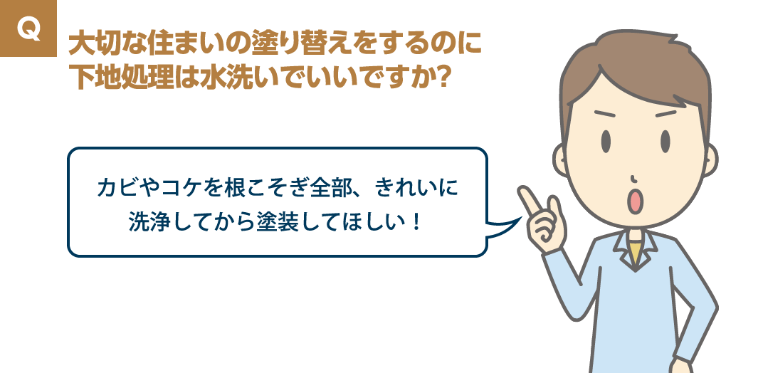 A.カビやコケを根こそぎ全部、きれいに洗浄してから塗装してほしい!