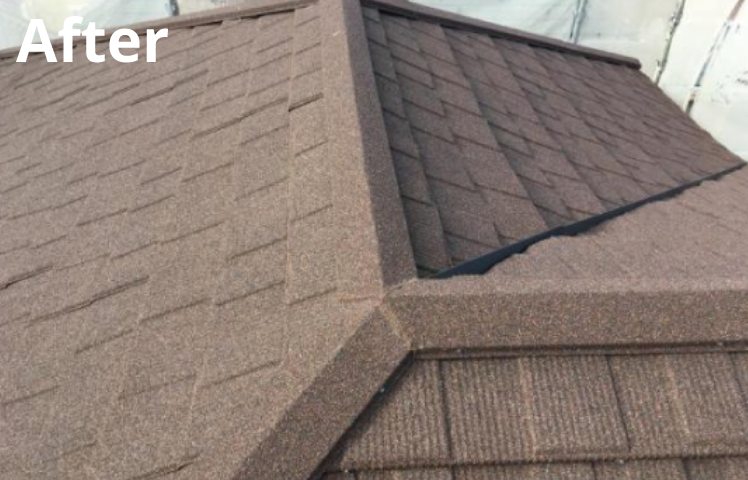 台風の影響で屋根の棟部分が剥がれてしまい、ご相談いただきました。屋根診断を行ったところ、棟を止めている釘なども経年劣化によって浮いている状態で、屋根自体の傷みと色褪せが目立っていたのでセネターをカバー工法にて施工させていただきました。台風の影響で急な工事でしたが、今後何か不安なことがございましたらいつでもご連絡ください。
